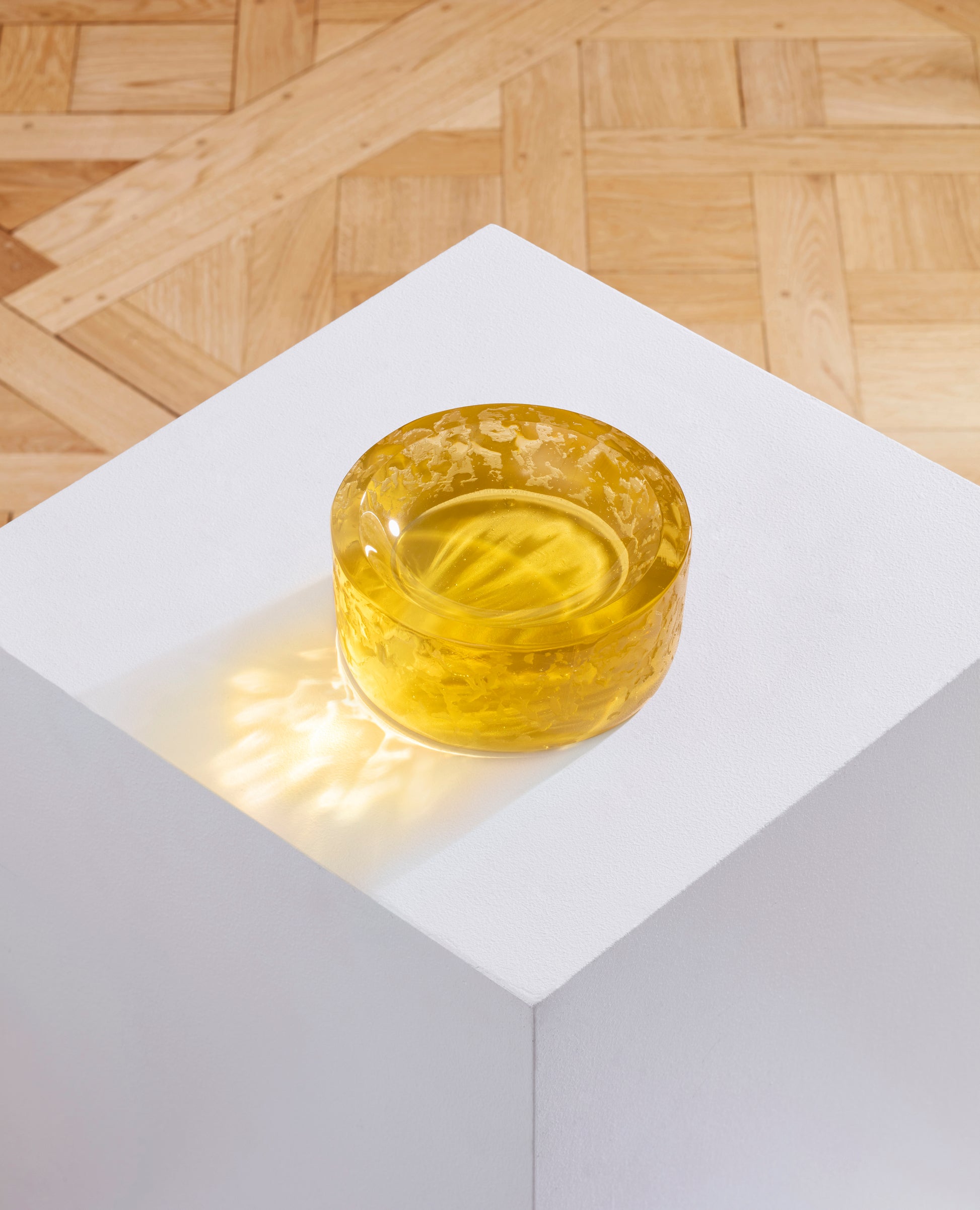 The Garnier & Linker circular centerpieces are made of a lost-wax cast crystal. Their transparency and textures combined with the light create a pool of colour. They exist in two sizes and different colours, easily customisable upon request. They are limited, numbered and signed edition.